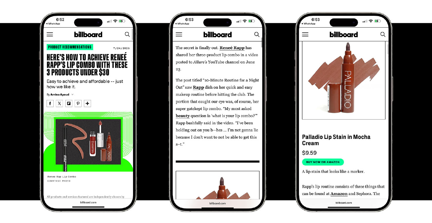 Palladio’s Lip Stain gained additional traction through celebrity-driven coverage in Billboard.